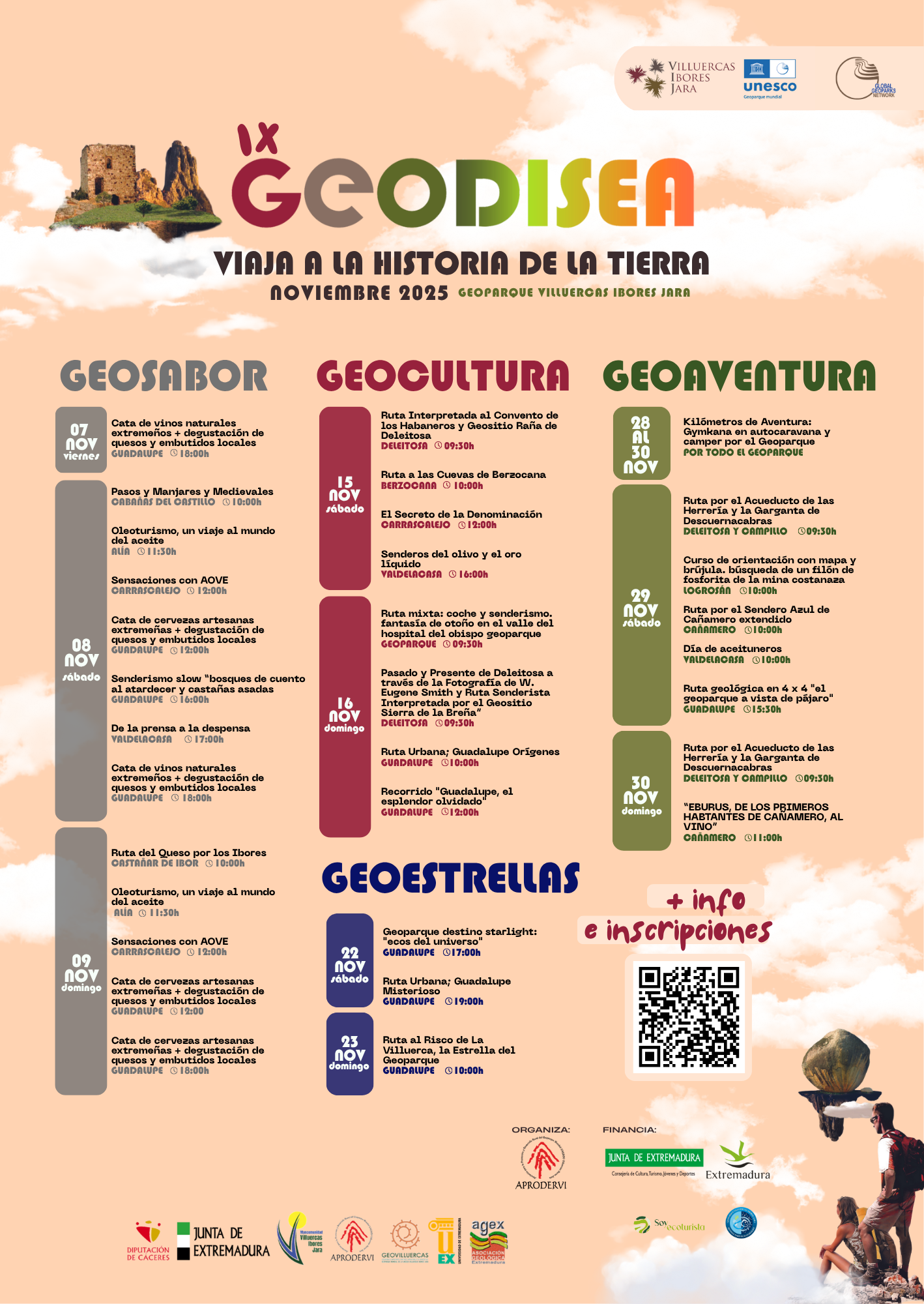 “Eburus: de los primeros habitantes de Cañamero al vino” Geoaventura 📅 Domingo 30 de noviembre 🕚 11:00 h 📍 Cañamero Descripción Ruta interpretada que combina geología, arqueología y enología. Del [...]